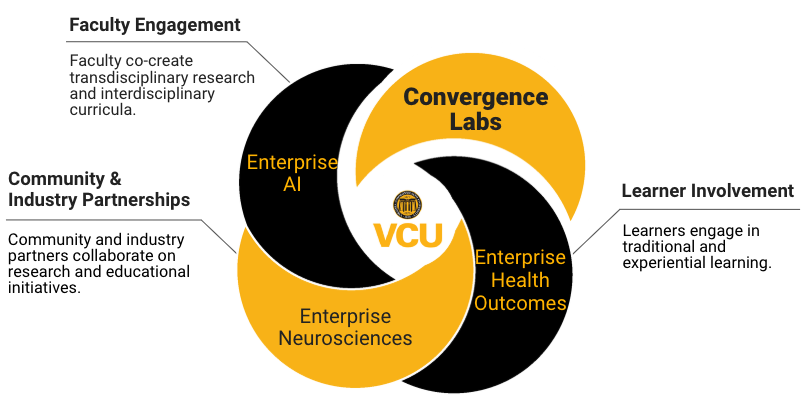 Convergence Labs represent what's possible when higher education breaks barriers and operates without walls. An initiative of the Office of the Provost, Convergence Labs bring together faculty across all our schools and colleges to collaborate on interdisciplinary curricula including experiential learning, transdisciplinary research, and community & industry partnership under our various Enterprise themes.